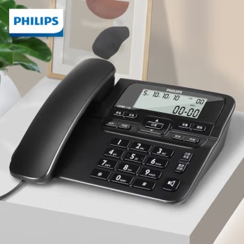 飞利浦(PHILIPS)电话机座机 固定电话 办公家用 来电显示 双接口 免电池 CORD118黑色 自营